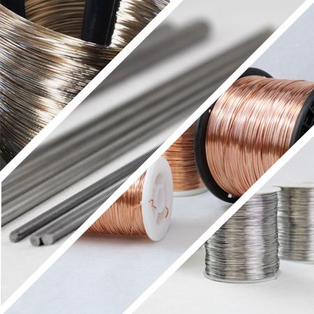 A selection of Bright Annealed C110 Copper and Stainless Steel (304, 316, and 321 grades) wire available on spools.